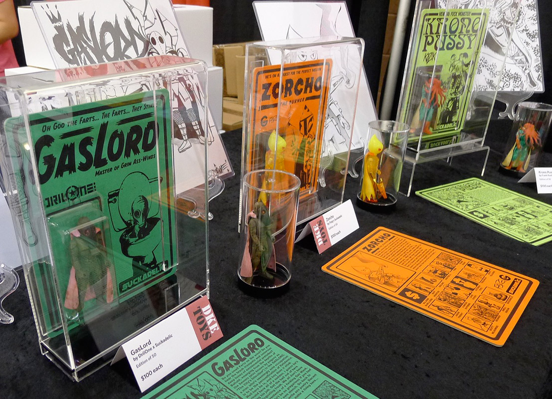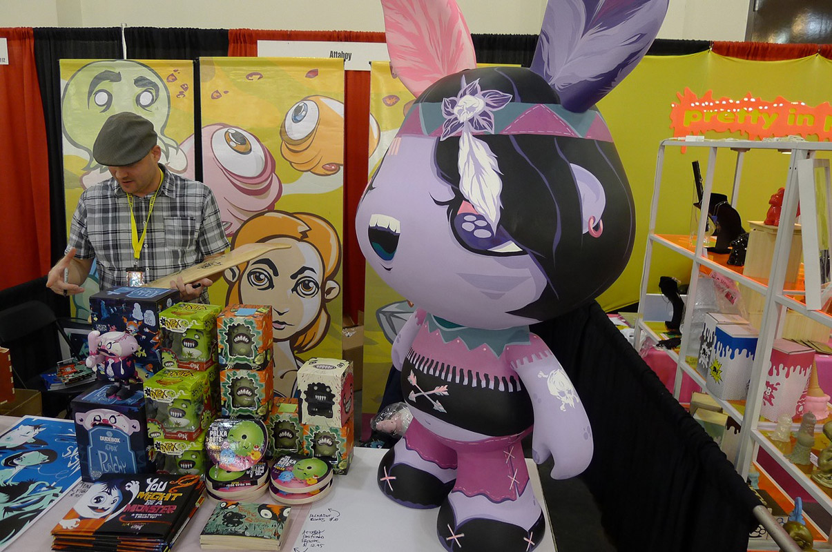 Designer Con, hatched as the Vinyl Toy Network in 2006, is a show arguably still in its infancy. Compared with other similar exhibitions in the area (SDCC, or even Kamikaze) the numbers in attendance are small. This is a great advantage if you enjoy the opportunity to speak easily with the exhibiting artists and business types. And if you appreciate lining up for limited edition exclusives in queues that last 3 minutes instead of 3 hours, then DCon certainly offers a mutant leg up.